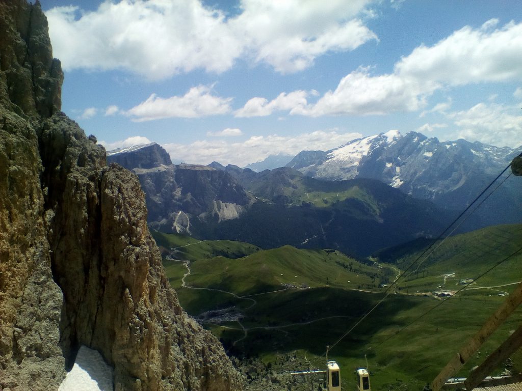 Das Sellajoch. Die kleinen Kabinen sind eine sehr gute Möglichkeit, schnell zum Gipfel zu kommen.